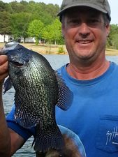 Picture is of Capt. Preston Harden with a rare Lake Hartwell black crappie