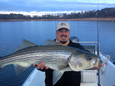 As of mid-December, the water is 16 feet low and 59°. It is looking like another mild winter so far on Lake Hartwell . Stripers are moving up the lake and into the major creeks, following the bait fish. It is easy locating fish, with the first step finding seagulls and loons. If gulls are in the area, stripers are probably close.