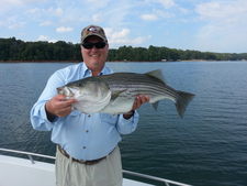 Picture is of Gene Doss from Commerce GA. with one of many stripers caught 7-22-14 on a live herring.